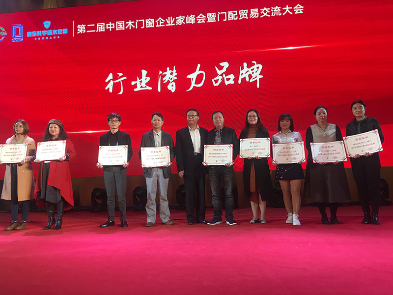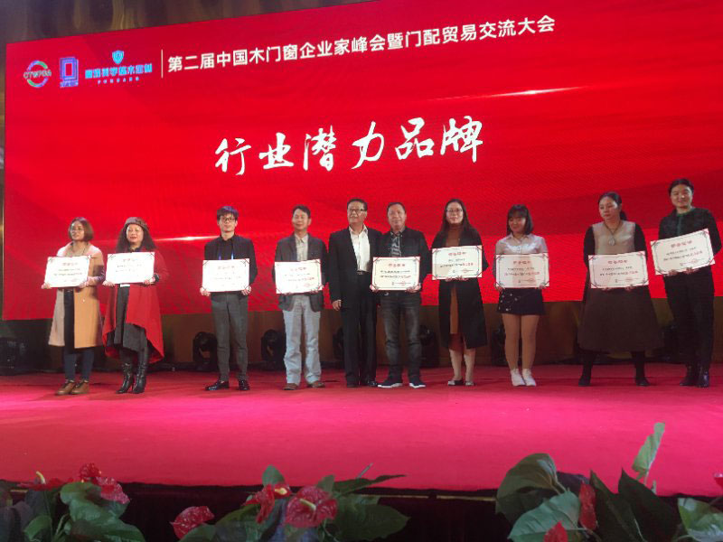 2017年第二屆中國木門窗企業家在峰會上樹興木業有限公司舉獲得2017年中國木門窗行業的潛力品牌的榮譽